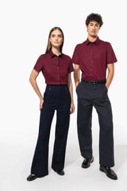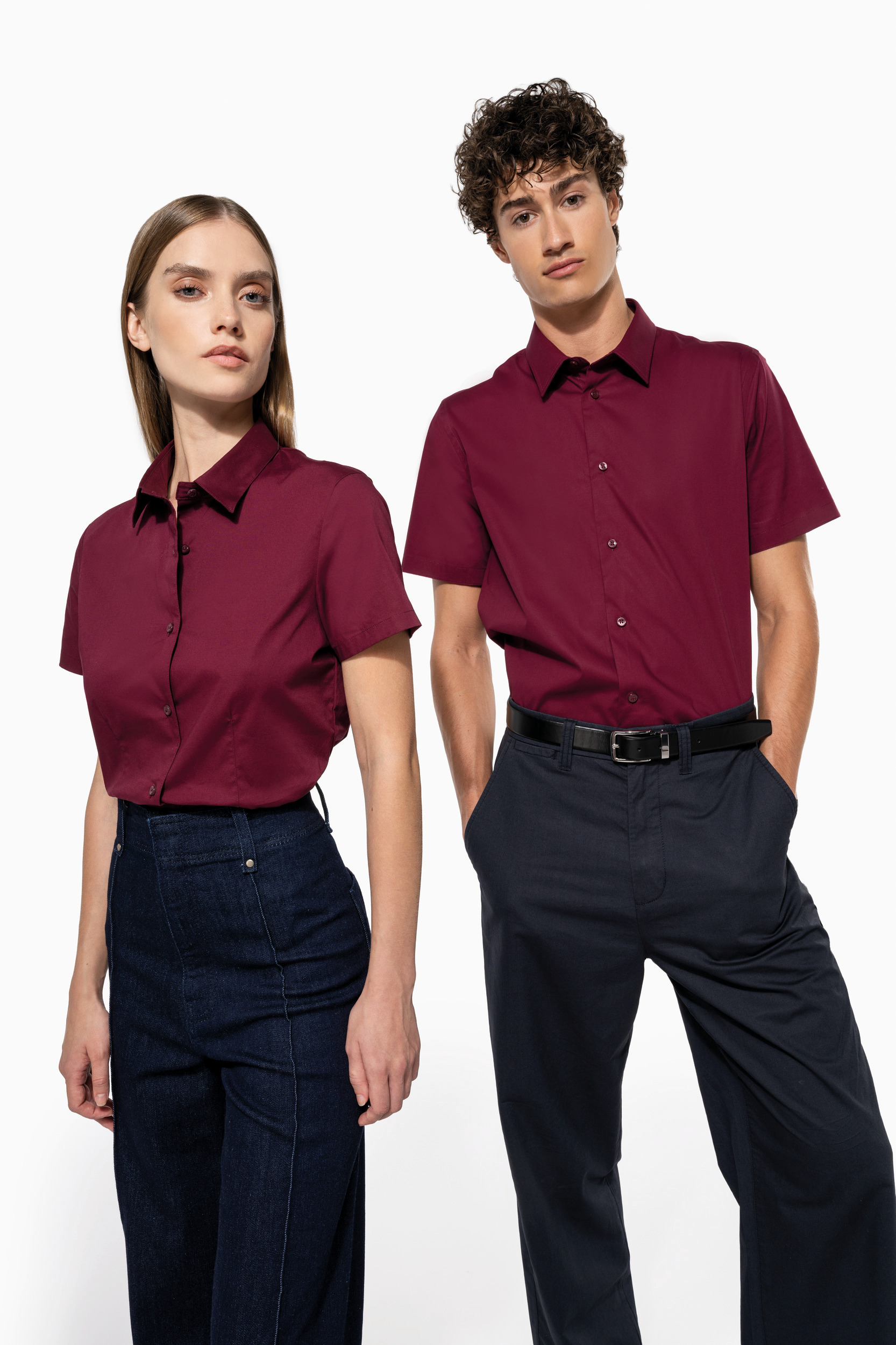 97% Cotone / 3% Elastan®. Vestibilità aderente. Colletto morbido. Bottoni tono su tono. 1 bottone di ricambio. Orlo stondato.
