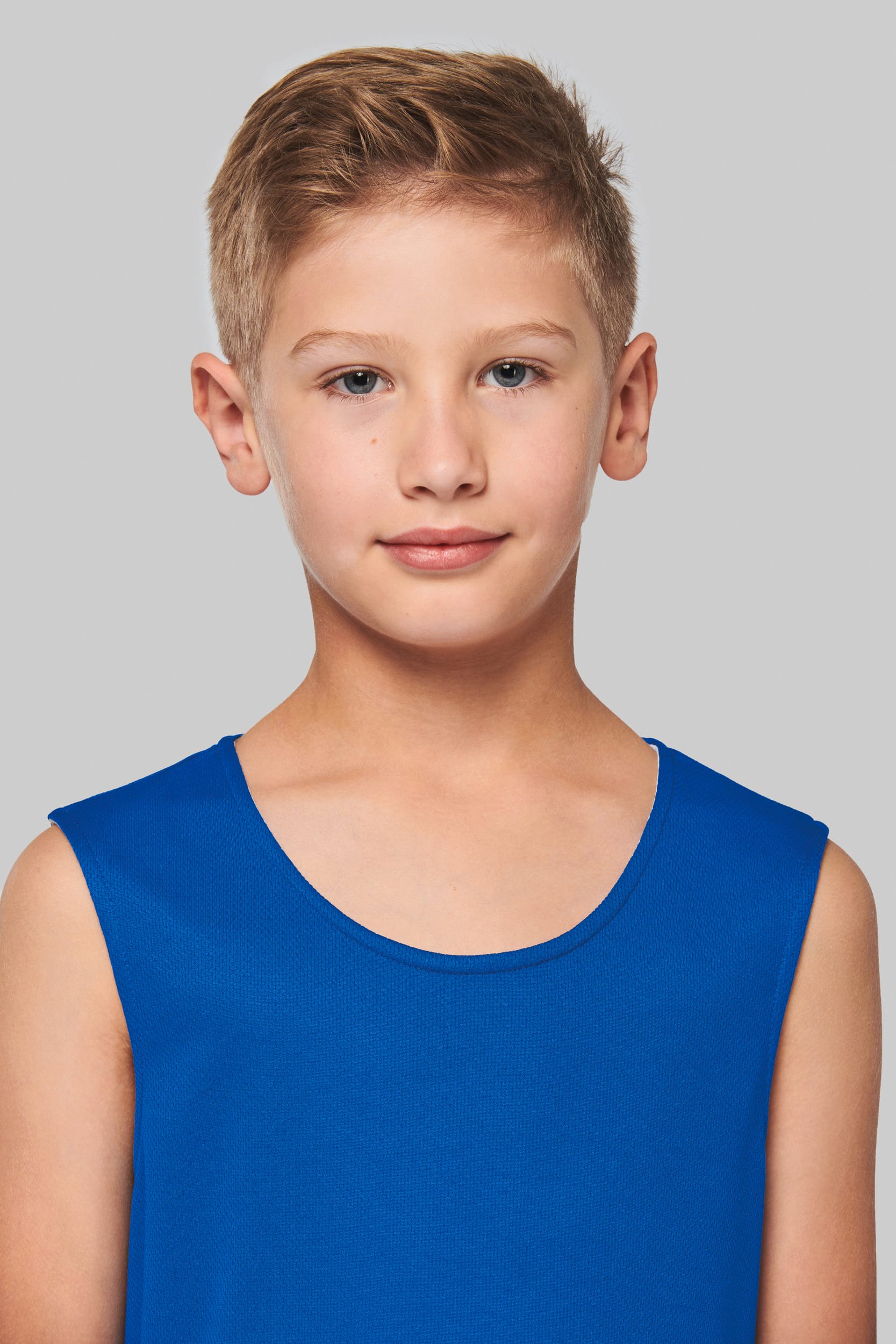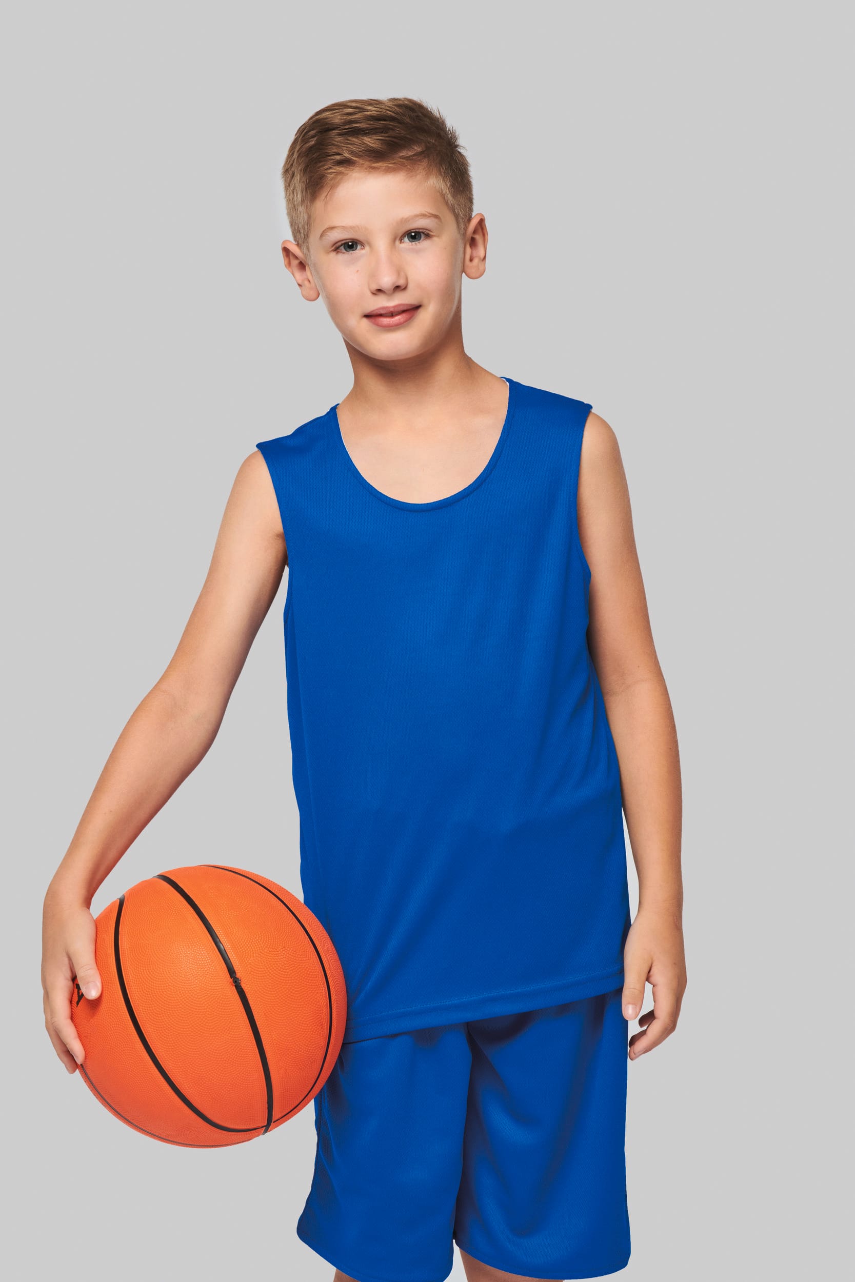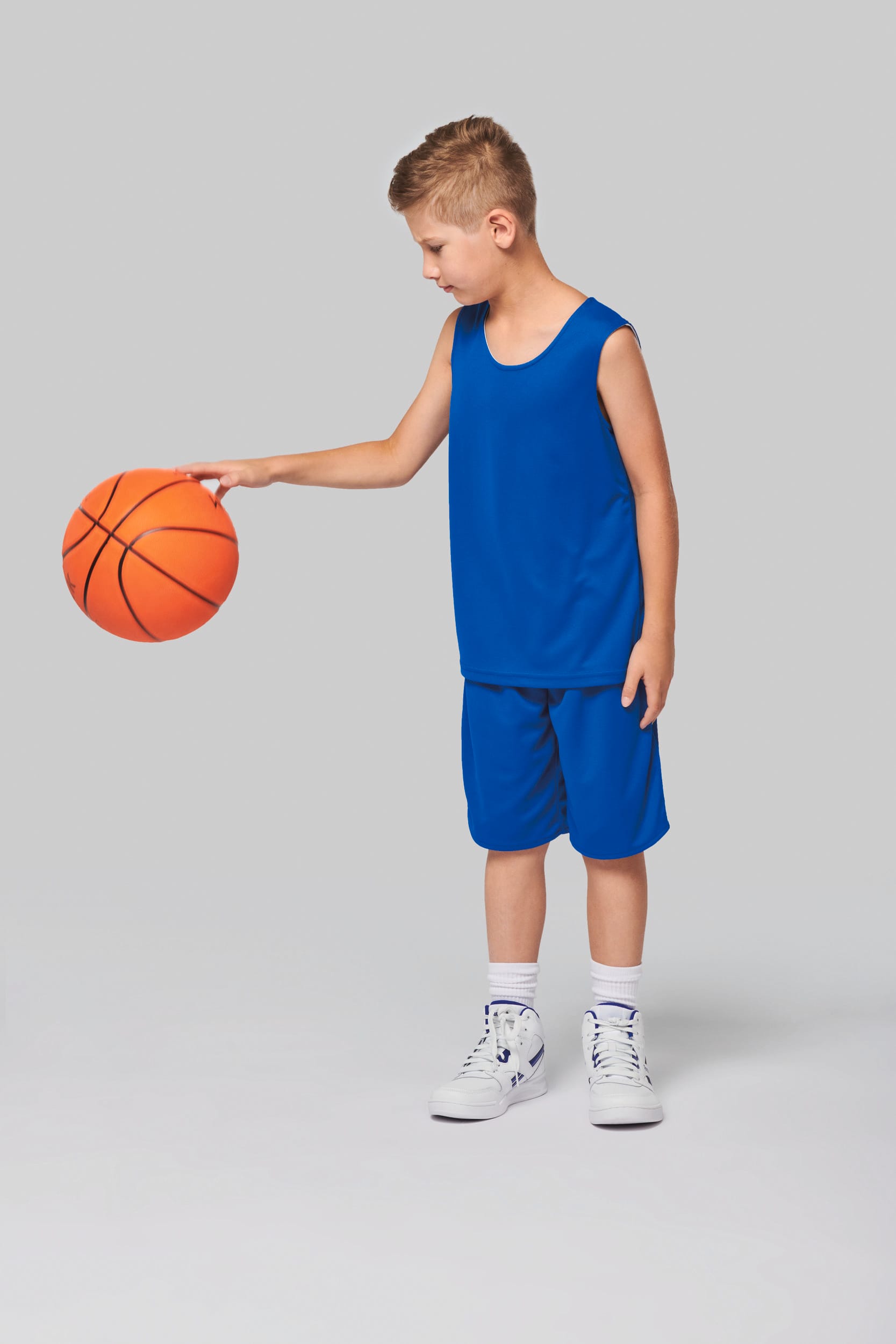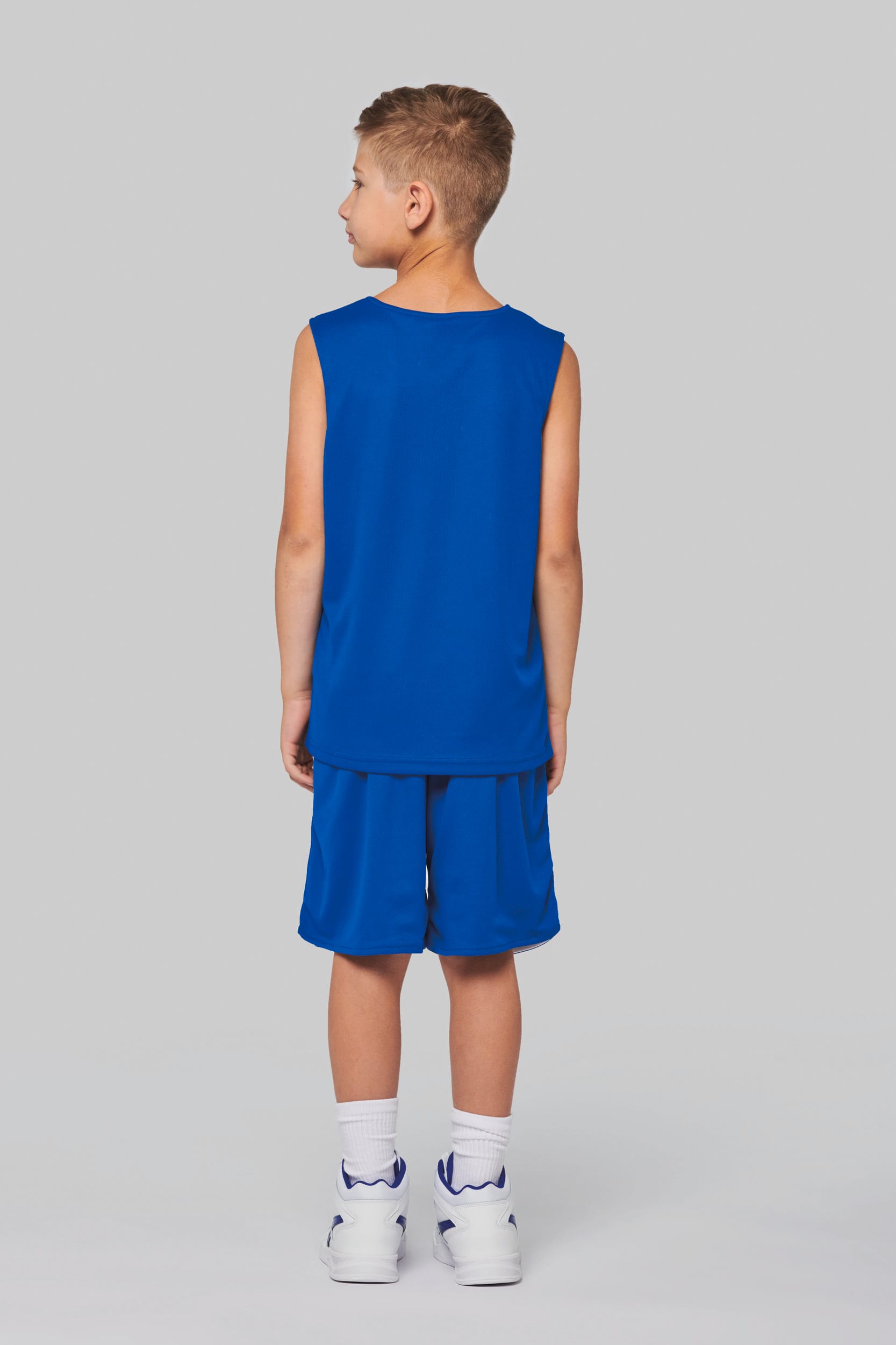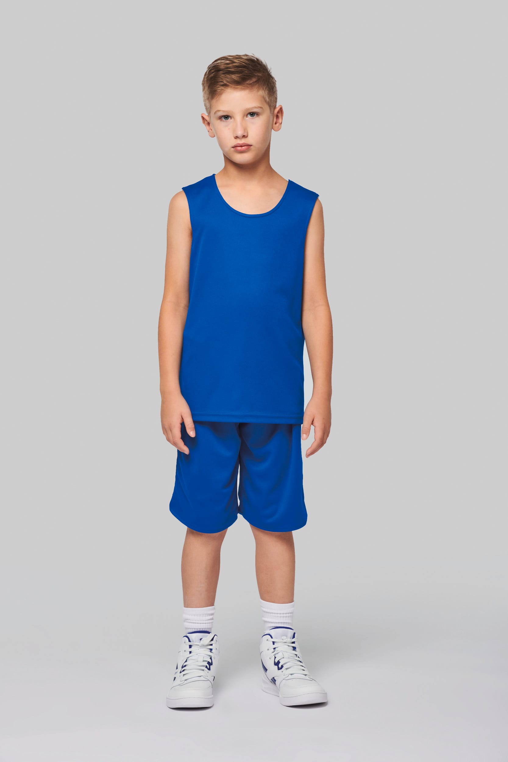 100% poliestere. Tessuto ad foderato e double face. Kit unisex composto da maglietta senza maniche e pantaloncini. Maglietta: double face e composta da 2 strati cuciti da 150 g/m² ciascuno. Fondo capo non assemblato per semplificare la personalizzazione. Pantaloncini: double face e composti da 2 strati cuciti da 150 g/m² ciascuno. Girovita elasticizzato con coulisse.
