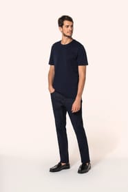 Edouard è alta 190 cm e indossa la taglia 42 di colore Denim