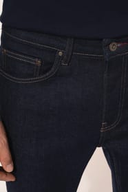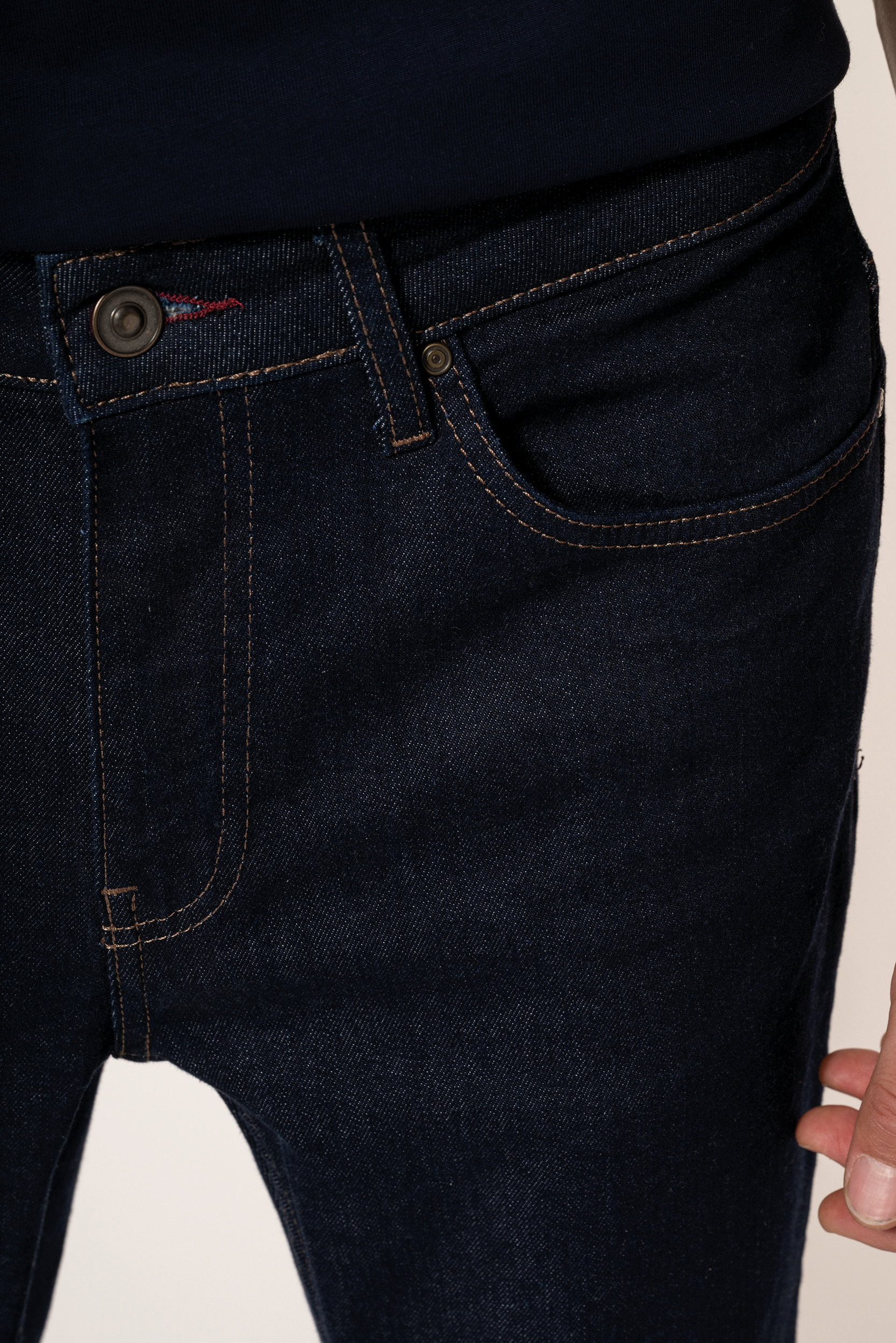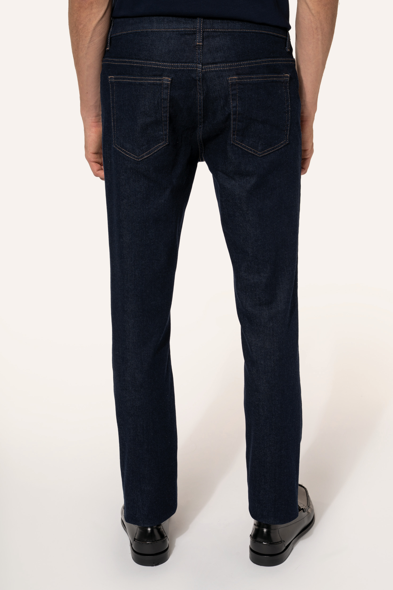 99% cotone denim / 1% elastan. 10,5 oz. Zip con bottone in metallo e rivetti in metallo dello stesso colore Old Bras. Due tasche anteriori, di cui una con taschino. 2 tasche posteriori applicate. Cuciture a contrasto bordeaux. Cintura con passanti e fascia a contrasto posteriore all'interno. Taglio dritto. I jeans vengono lavati con un trattamento specifico che comporta variazioni di colore da un capo all'altro. Con il lavaggio, si formerà una patina. A contatto con superfici chiare potrebbero stingere. Lavare separatamente. Nessuna etichetta con il nome del marchio; solo una piccola etichetta con l'indicazione della taglia per semplificare la personalizzazione.